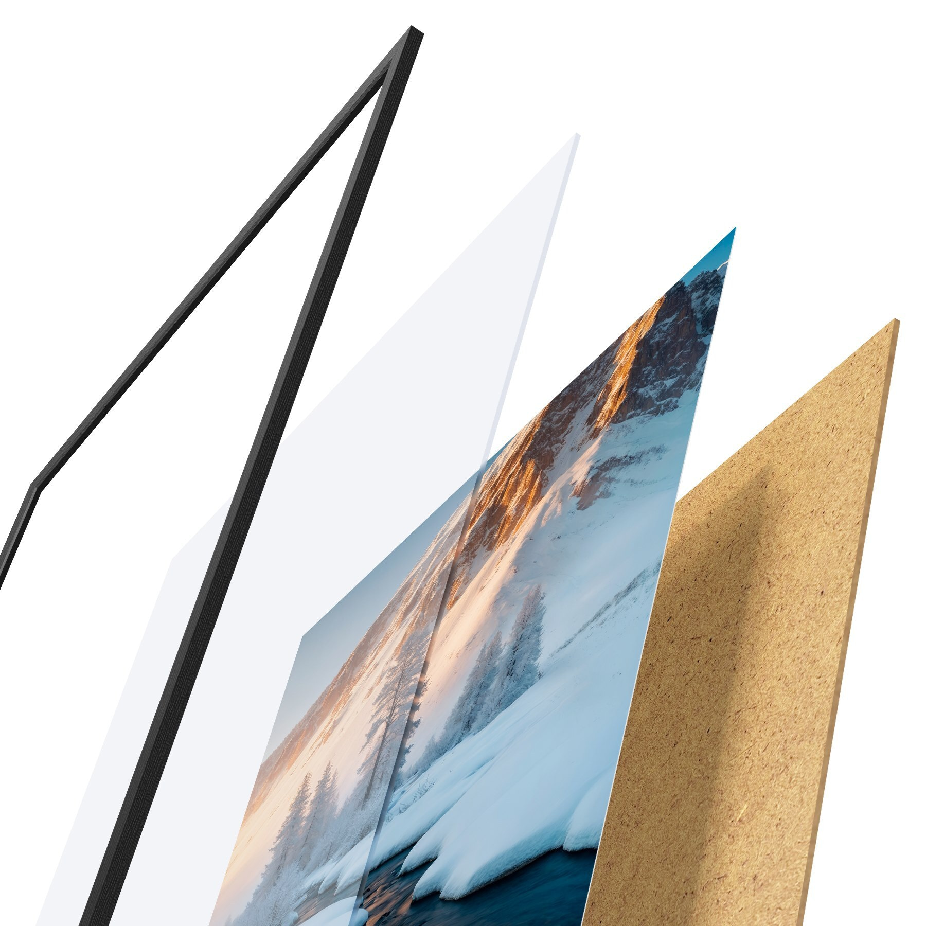 Il poster è composto da cornice, plexiglass, immagine stampata e supporto in truciolato. Il poster può essere immediatamente appeso alla parete grazie ai supporti sul retro.