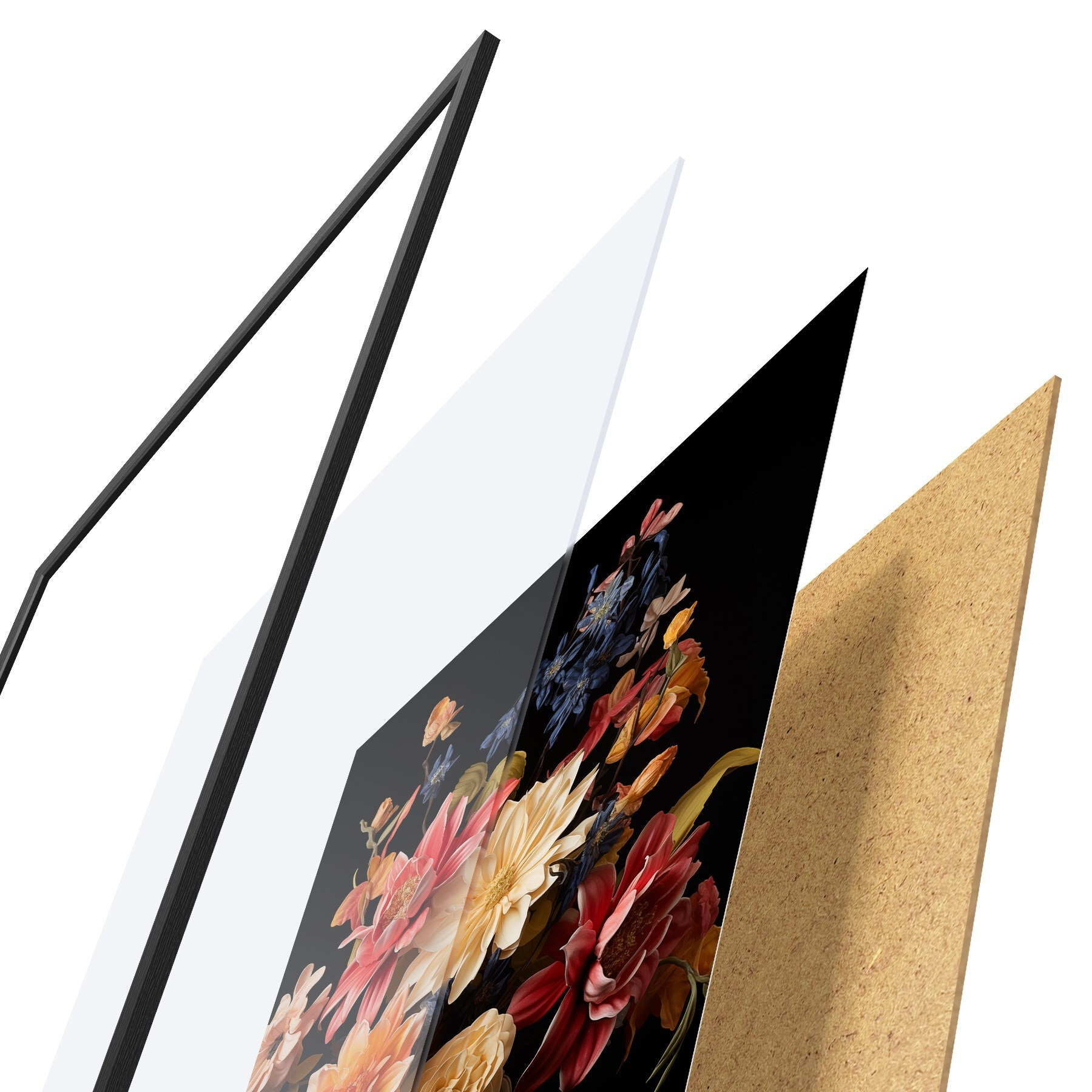 Il poster è composto da cornice, plexiglass, immagine stampata e supporto in truciolato. Il poster può essere immediatamente appeso alla parete grazie ai supporti sul retro.