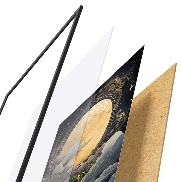 Il poster è composto da cornice, plexiglass, immagine stampata e supporto in truciolato. Il poster può essere immediatamente appeso alla parete grazie ai supporti sul retro.