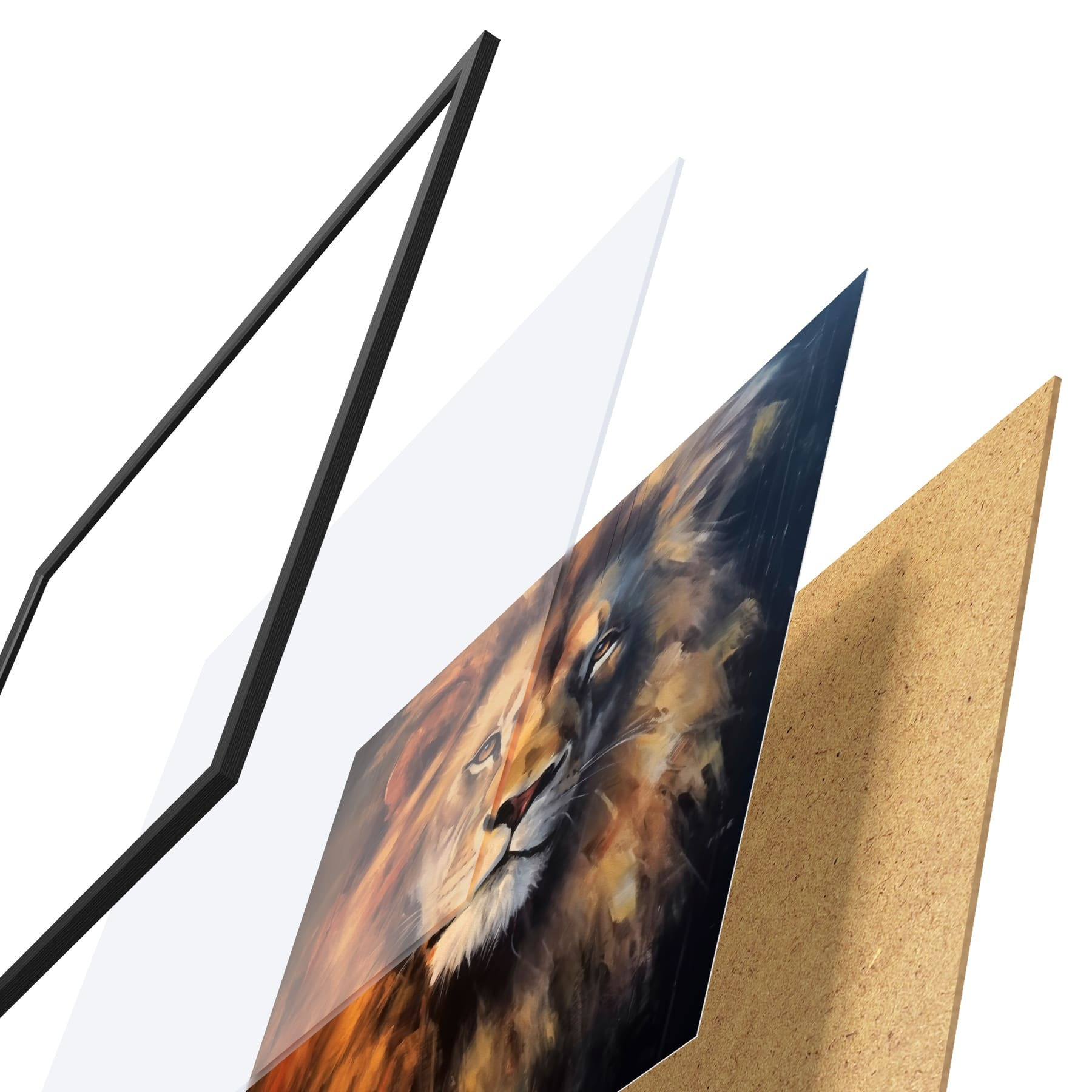 Il poster è composto da cornice, plexiglass, immagine stampata e supporto in truciolato. Il poster può essere immediatamente appeso alla parete grazie ai supporti sul retro.