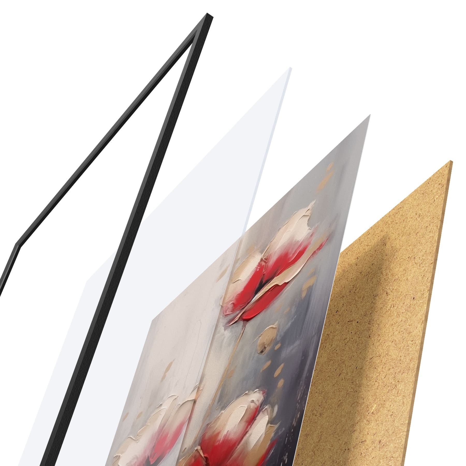 Il poster è composto da cornice, plexiglass, immagine stampata e supporto in truciolato. Il poster può essere immediatamente appeso alla parete grazie ai supporti sul retro.