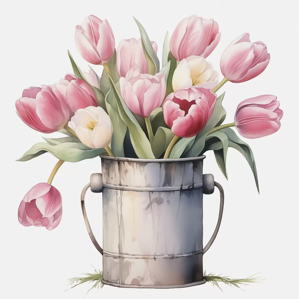 Poster Bouquet di tulipani in un secchio ad imitazione dell'acquerello f42353