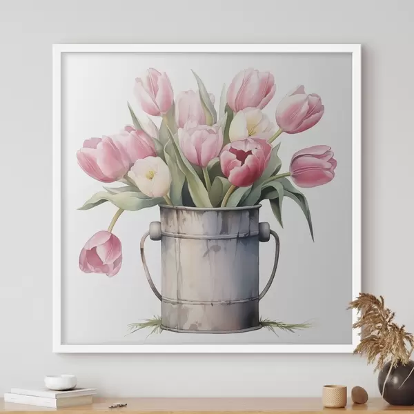 Poster Bouquet di tulipani in un secchio ad imitazione dell'acquerello Nr f42353