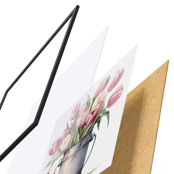 Il poster è composto da cornice, plexiglass, immagine stampata e supporto in truciolato. Il poster può essere immediatamente appeso alla parete grazie ai supporti sul retro.