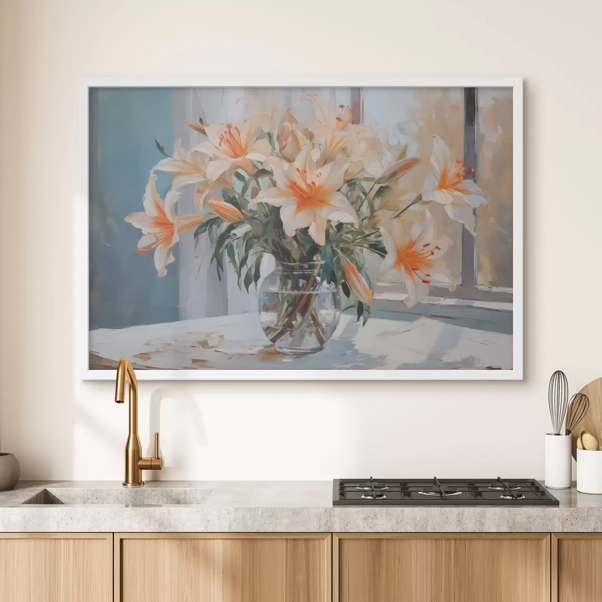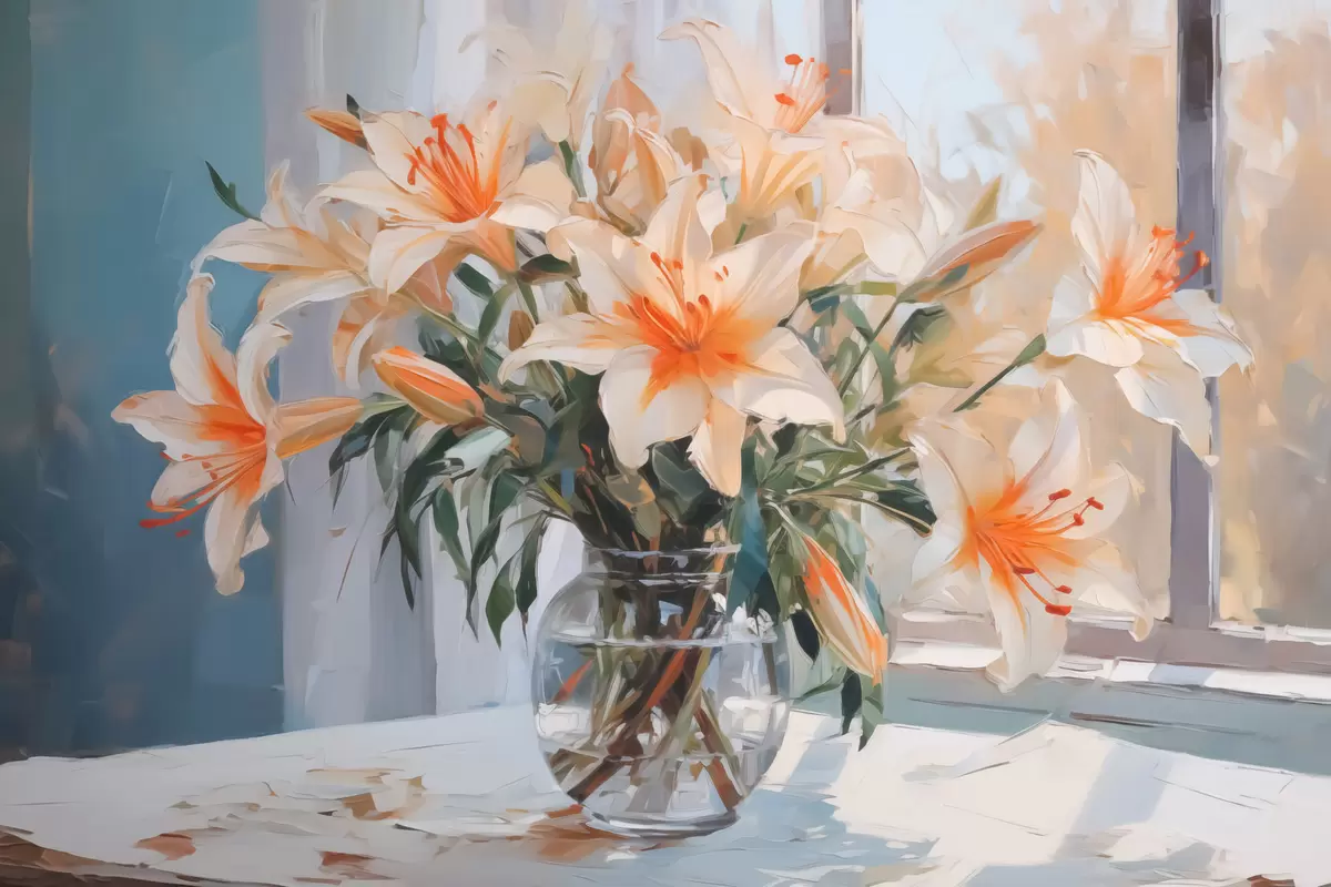 Poster Gigli in un vaso di vetro imitazione di un dipinto Nr f42359