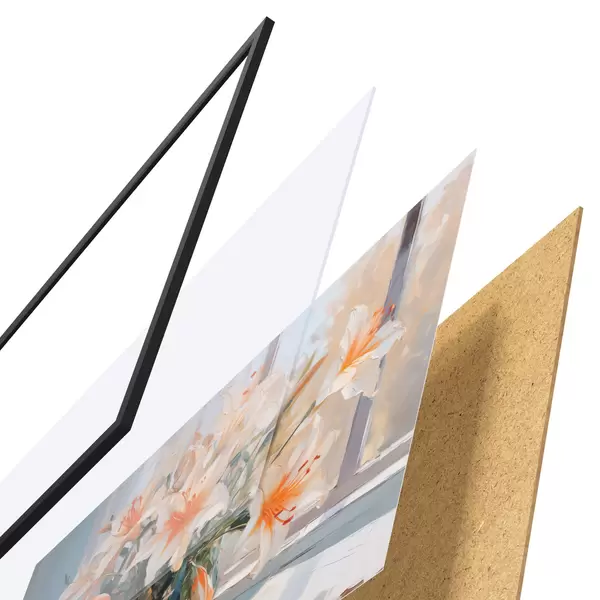 Il poster è composto da cornice, plexiglass, immagine stampata e supporto in truciolato. Il poster può essere immediatamente appeso alla parete grazie ai supporti sul retro.