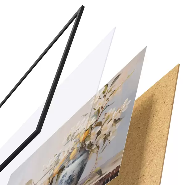 Il poster è composto da cornice, plexiglass, immagine stampata e supporto in truciolato. Il poster può essere immediatamente appeso alla parete grazie ai supporti sul retro.