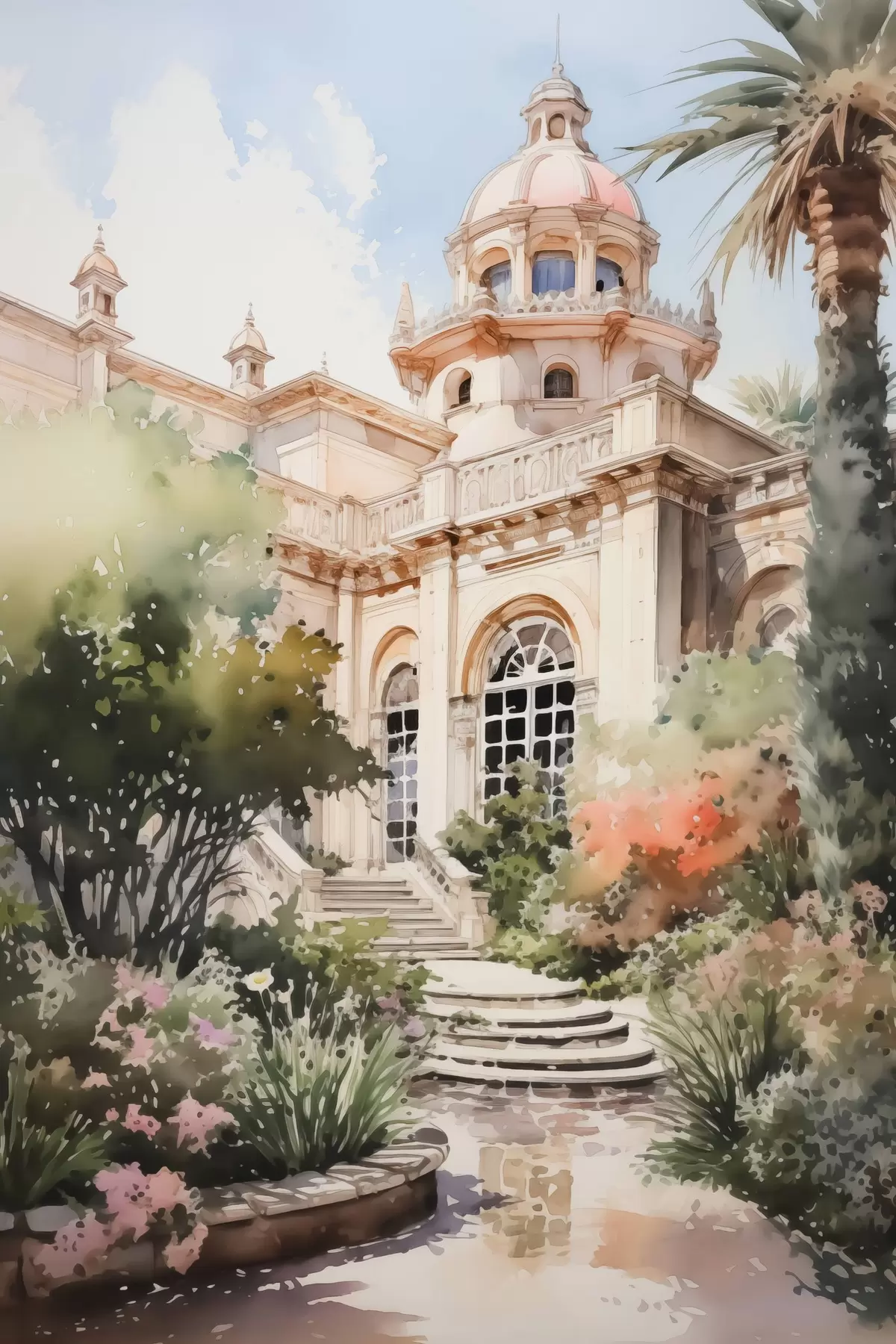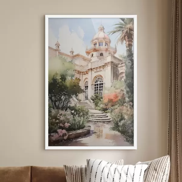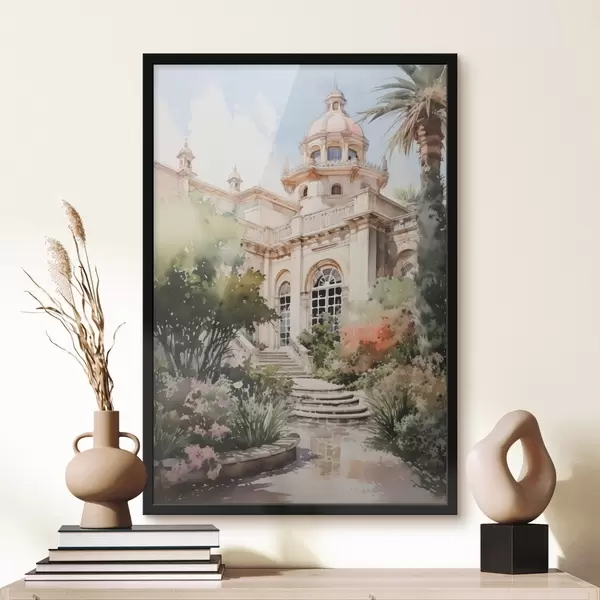 Poster Giardino vicino alla casa imitazione acquerello f42362