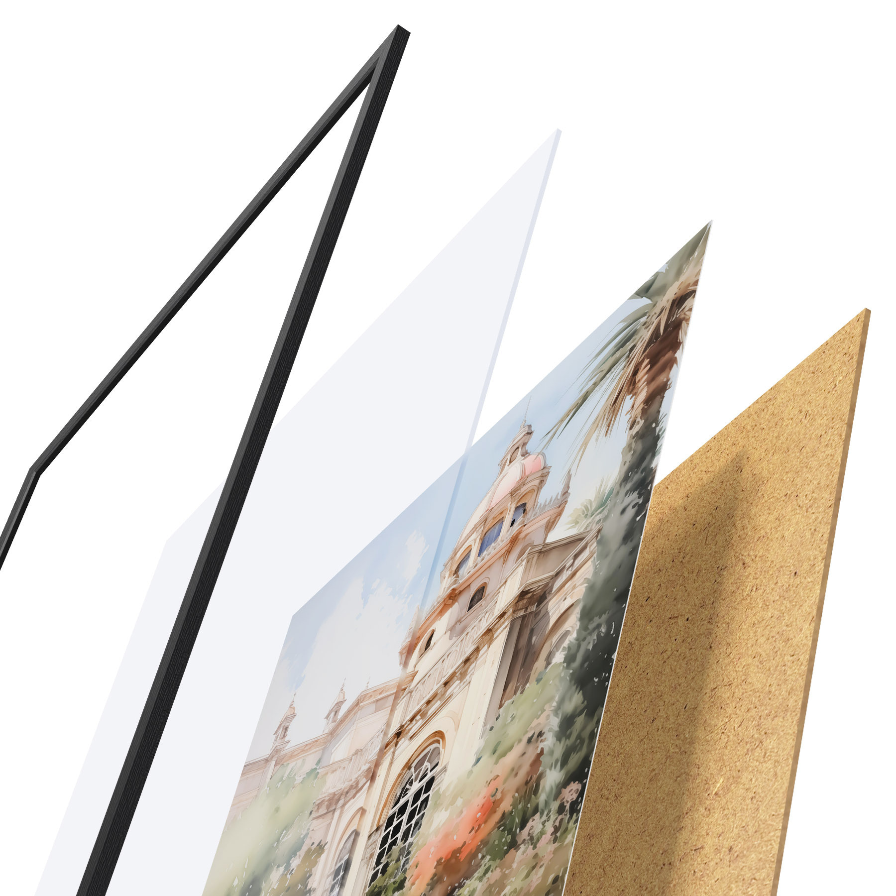 Il poster è composto da cornice, plexiglass, immagine stampata e supporto in truciolato. Il poster può essere immediatamente appeso alla parete grazie ai supporti sul retro.