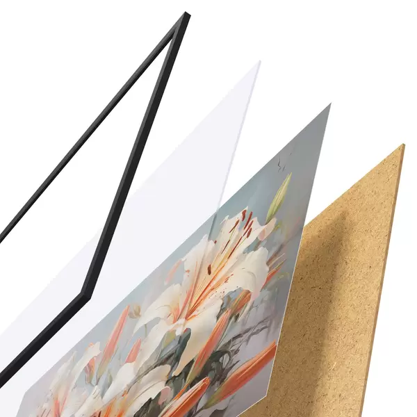 Il poster è composto da cornice, plexiglass, immagine stampata e supporto in truciolato. Il poster può essere immediatamente appeso alla parete grazie ai supporti sul retro.