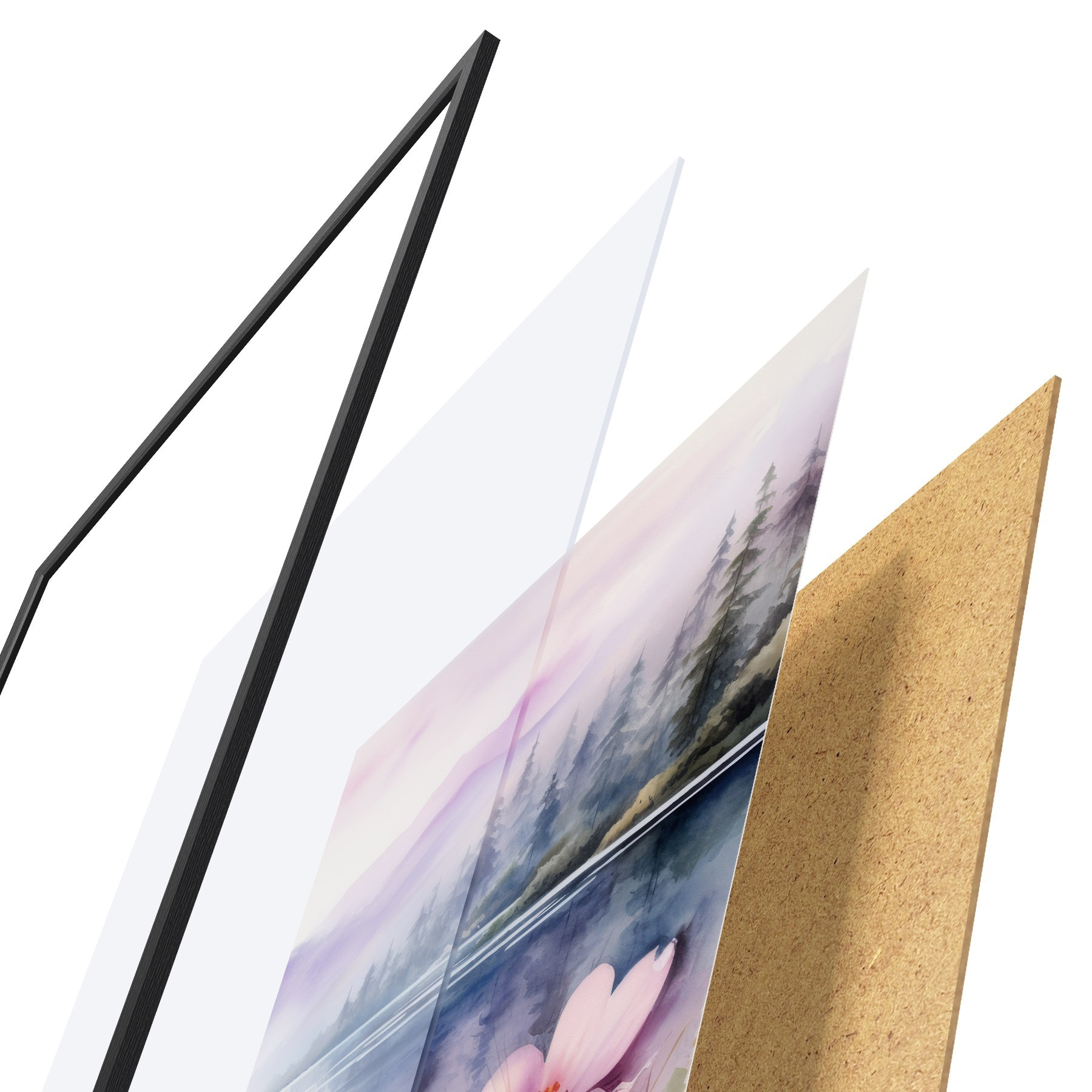 Il poster è composto da cornice, plexiglass, immagine stampata e supporto in truciolato. Il poster può essere immediatamente appeso alla parete grazie ai supporti sul retro.