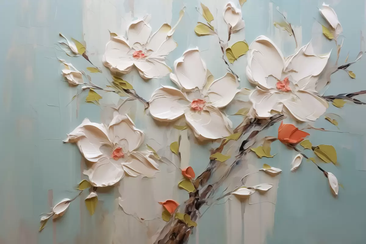 Poster Fiori bianchi imitazione di pennellate di vernice Nr f42417