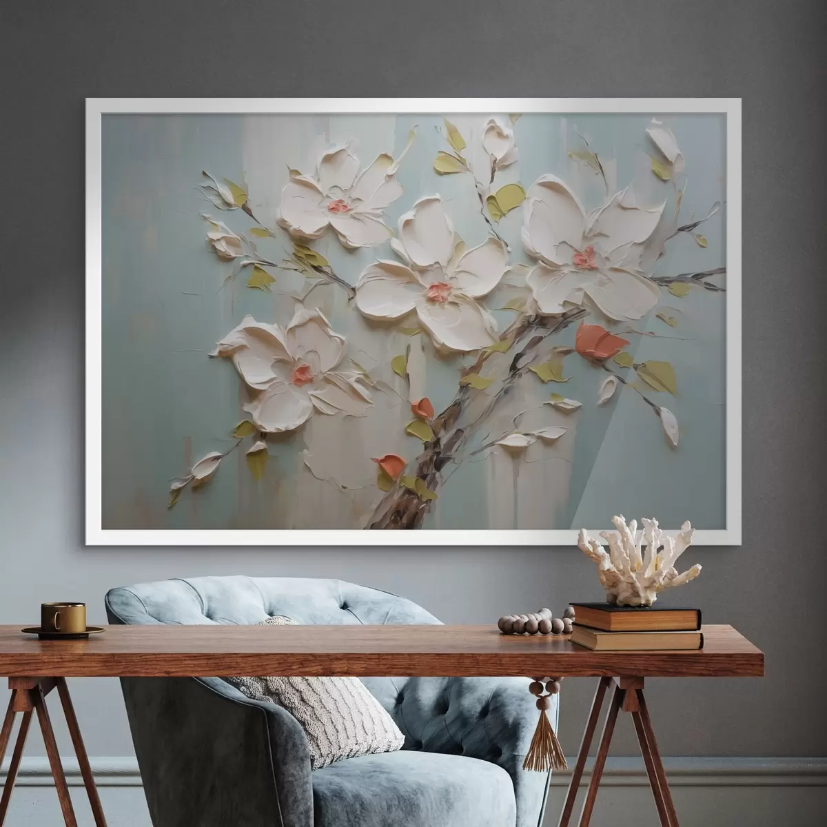 Poster Fiori bianchi imitazione di pennellate di vernice f42417
