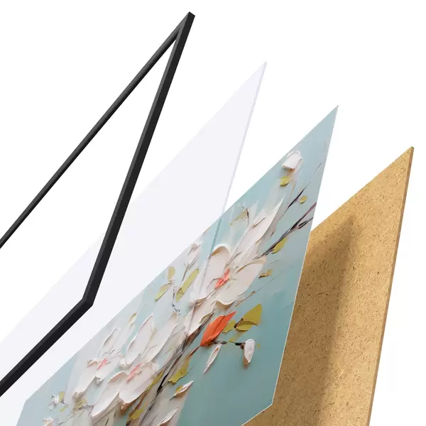 Il poster è composto da cornice, plexiglass, immagine stampata e supporto in truciolato. Il poster può essere immediatamente appeso alla parete grazie ai supporti sul retro.