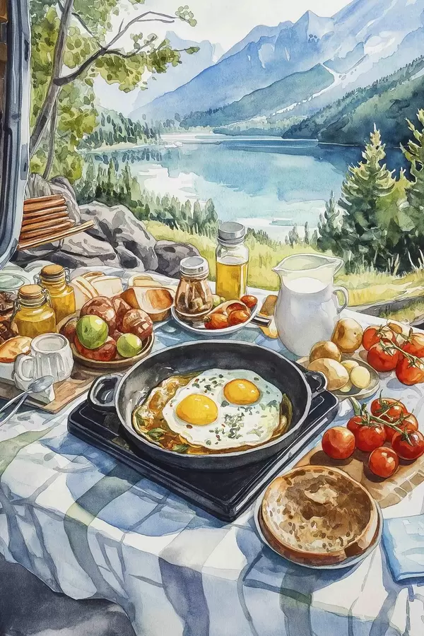Poster Colazione estetica vicino al lago, stile acquerello Nr f42432