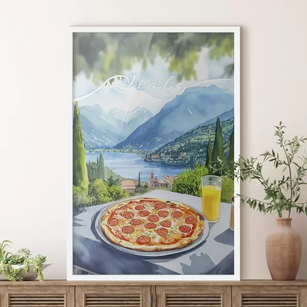 Poster Stile acquerello, Italia, pizza, città vecchia, paesaggio montano f42435