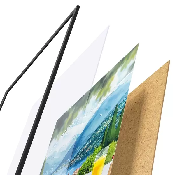 Il poster è composto da cornice, plexiglass, immagine stampata e supporto in truciolato. Il poster può essere immediatamente appeso alla parete grazie ai supporti sul retro.