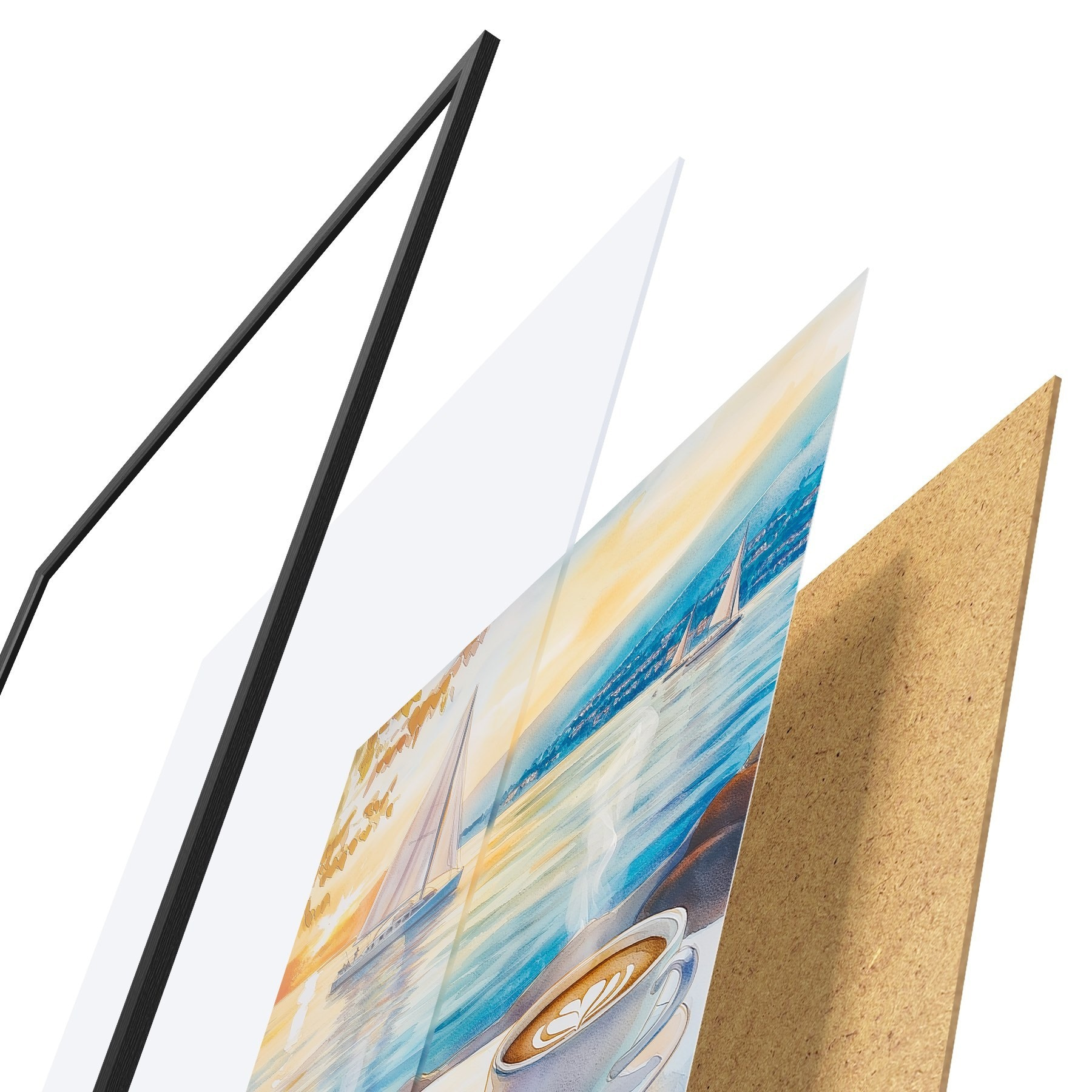 Il poster è composto da cornice, plexiglass, immagine stampata e supporto in truciolato. Il poster può essere immediatamente appeso alla parete grazie ai supporti sul retro.