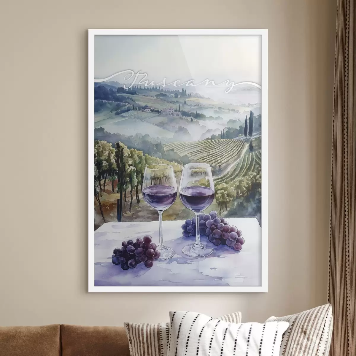 Poster Paesaggi toscani in stile acquerello, cantieri del vino, uva Nr f42440