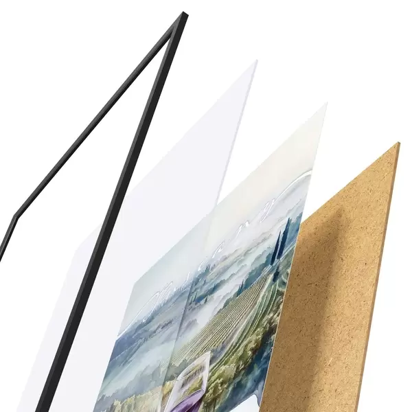 Il poster è composto da cornice, plexiglass, immagine stampata e supporto in truciolato. Il poster può essere immediatamente appeso alla parete grazie ai supporti sul retro.