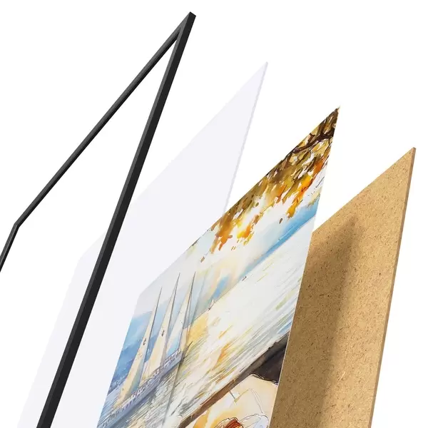 Il poster è composto da cornice, plexiglass, immagine stampata e supporto in truciolato. Il poster può essere immediatamente appeso alla parete grazie ai supporti sul retro.