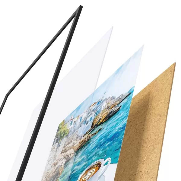 Il poster è composto da cornice, plexiglass, immagine stampata e supporto in truciolato. Il poster può essere immediatamente appeso alla parete grazie ai supporti sul retro.