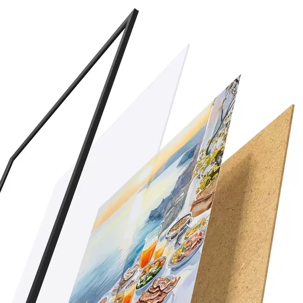 Il poster è composto da cornice, plexiglass, immagine stampata e supporto in truciolato. Il poster può essere immediatamente appeso alla parete grazie ai supporti sul retro.