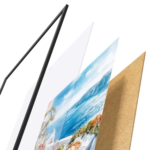 Il poster è composto da cornice, plexiglass, immagine stampata e supporto in truciolato. Il poster può essere immediatamente appeso alla parete grazie ai supporti sul retro.