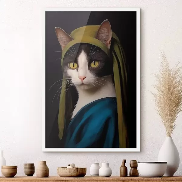 Poster Gatto in stile ritratto con orecchino di perla Nr f42486