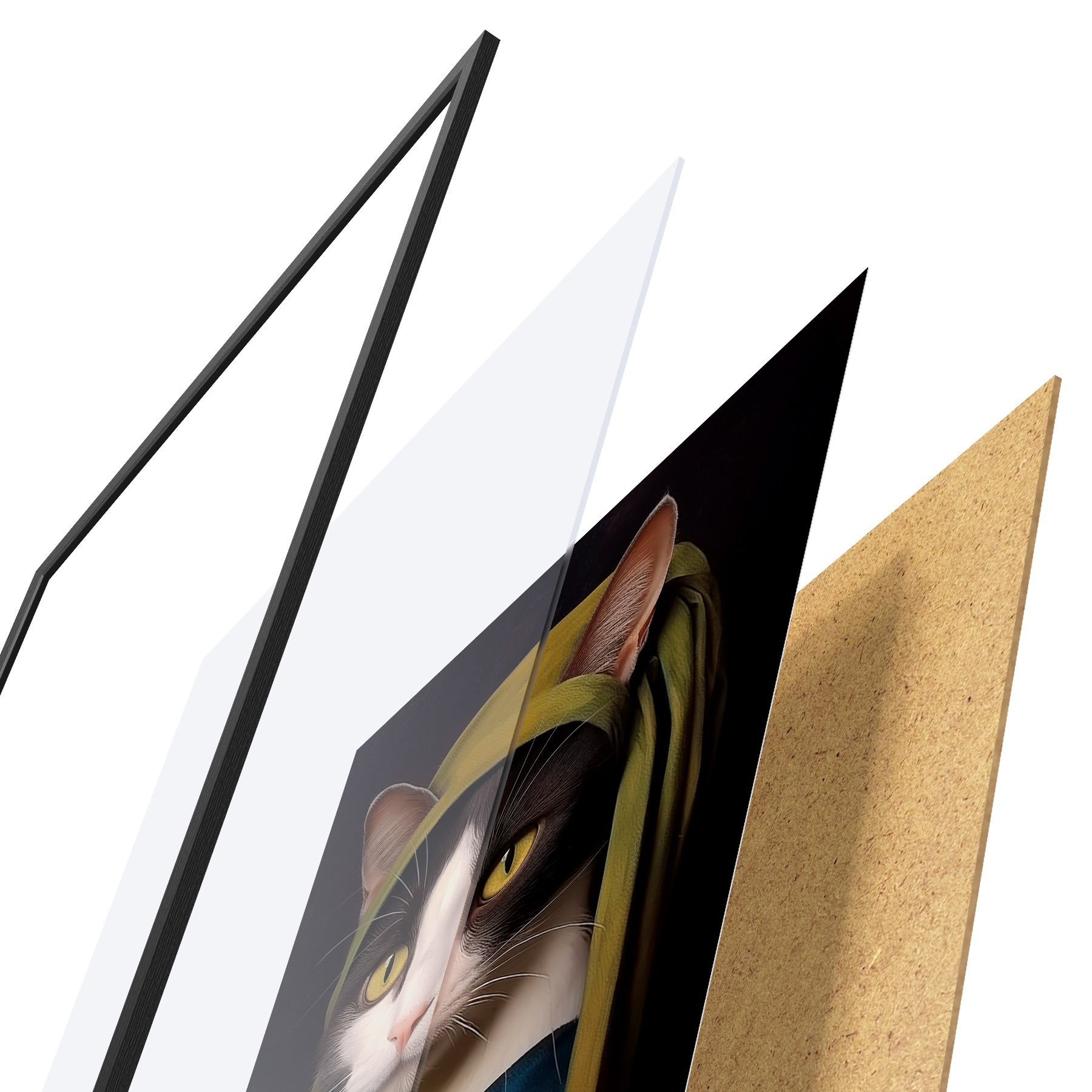 Il poster è composto da cornice, plexiglass, immagine stampata e supporto in truciolato. Il poster può essere immediatamente appeso alla parete grazie ai supporti sul retro.