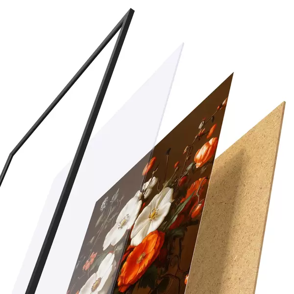 Il poster è composto da cornice, plexiglass, immagine stampata e supporto in truciolato. Il poster può essere immediatamente appeso alla parete grazie ai supporti sul retro.