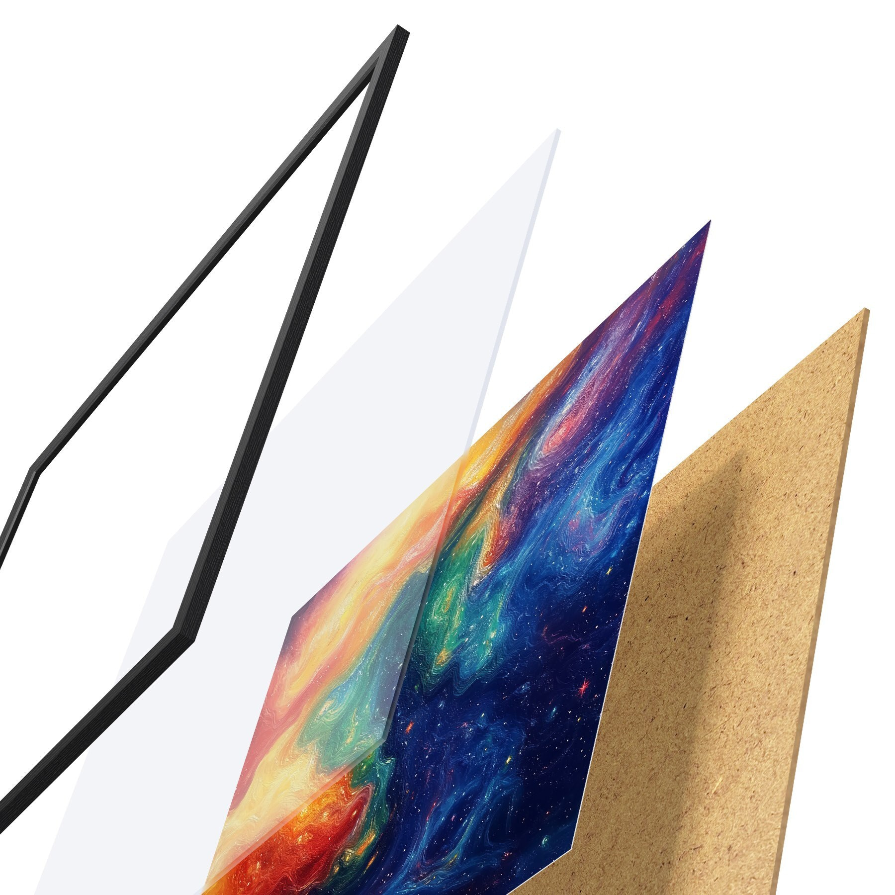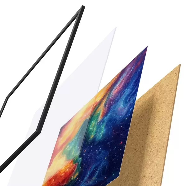 Il poster è composto da cornice, plexiglass, immagine stampata e supporto in truciolato. Il poster può essere immediatamente appeso alla parete grazie ai supporti sul retro.