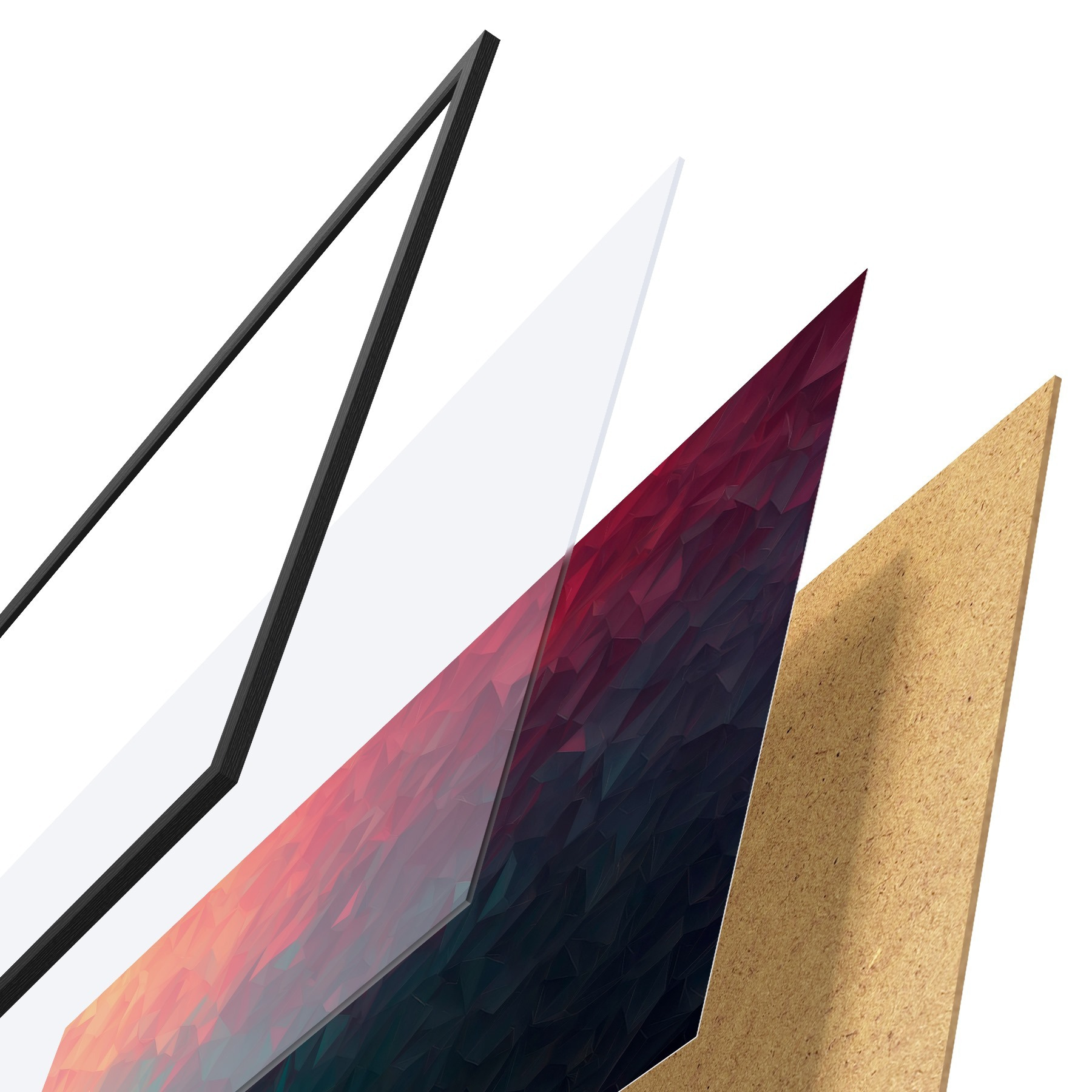 Il poster è composto da cornice, plexiglass, immagine stampata e supporto in truciolato. Il poster può essere immediatamente appeso alla parete grazie ai supporti sul retro.