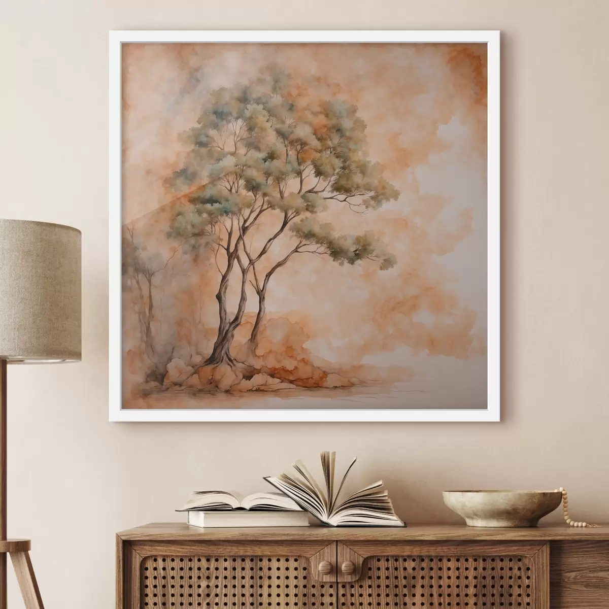 Poster Albero su sfondo arancione e bianco in stile pittura ad acquerello Nr f42514