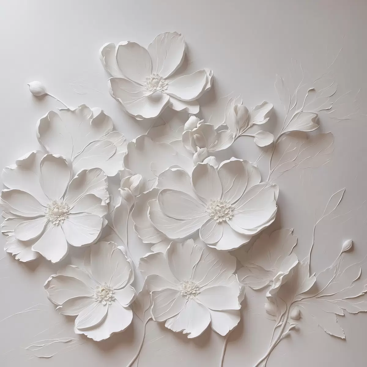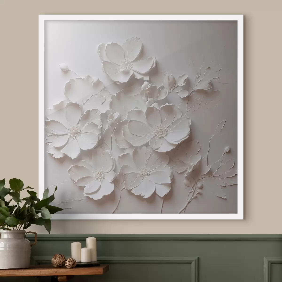 Poster Fiori bianchi su sfondo bianco in stile pittura ad olio Nr f42516