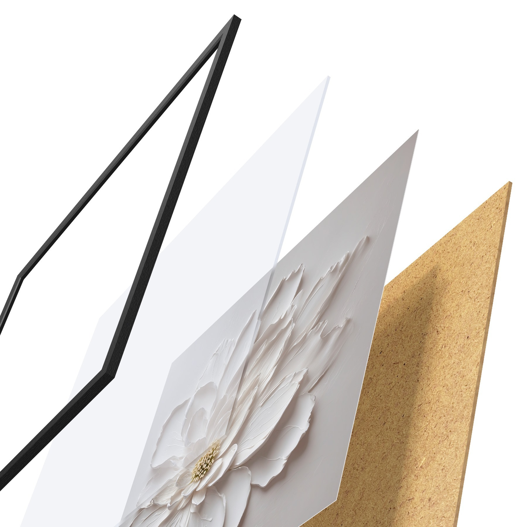 Il poster è composto da cornice, plexiglass, immagine stampata e supporto in truciolato. Il poster può essere immediatamente appeso alla parete grazie ai supporti sul retro.