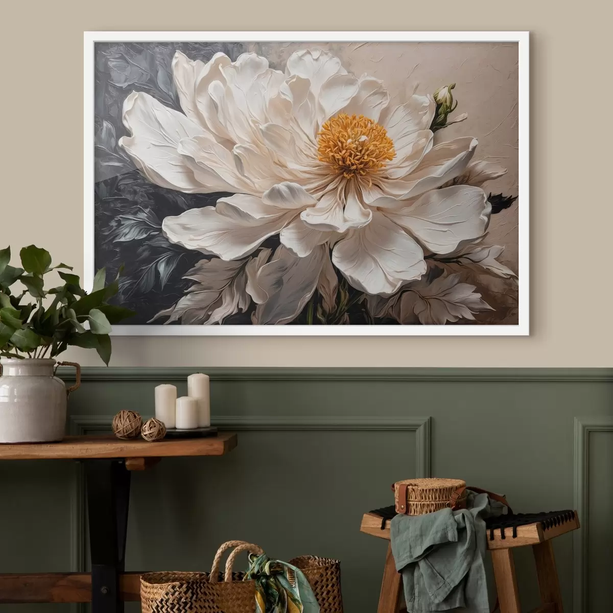 Poster Fiore bianco su sfondo nero e beige Nr f42522