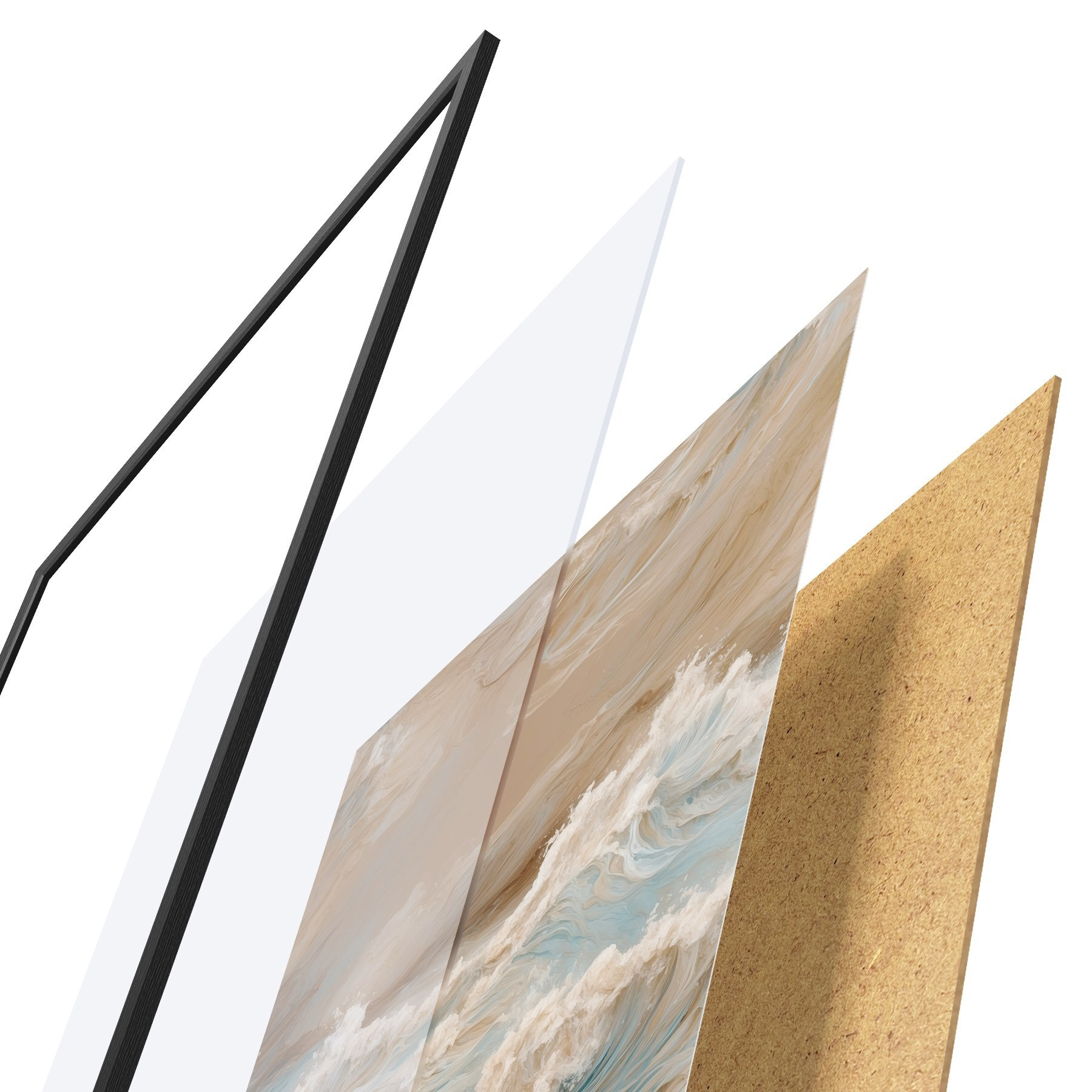 Il poster è composto da cornice, plexiglass, immagine stampata e supporto in truciolato. Il poster può essere immediatamente appeso alla parete grazie ai supporti sul retro.