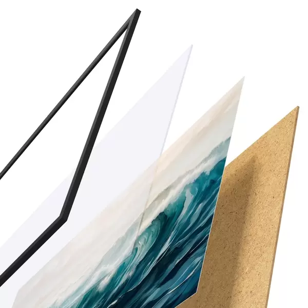 Il poster è composto da cornice, plexiglass, immagine stampata e supporto in truciolato. Il poster può essere immediatamente appeso alla parete grazie ai supporti sul retro.