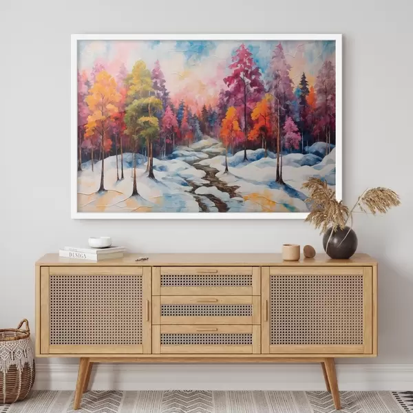Poster Foresta in stile invernale dipinto ad acquerello Nr f42549