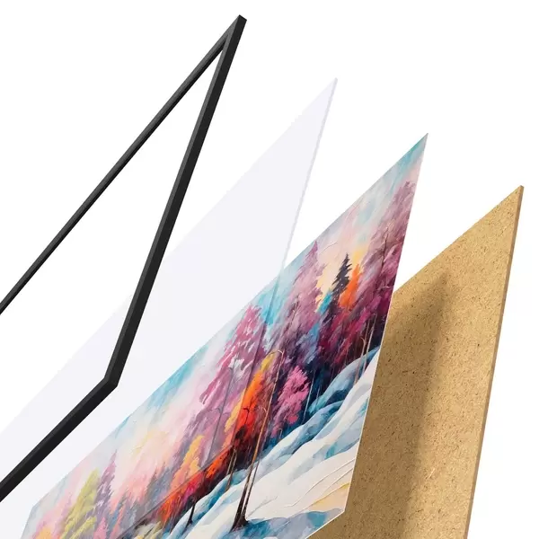 Il poster è composto da cornice, plexiglass, immagine stampata e supporto in truciolato. Il poster può essere immediatamente appeso alla parete grazie ai supporti sul retro.