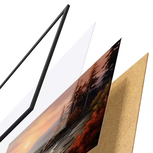 Il poster è composto da cornice, plexiglass, immagine stampata e supporto in truciolato. Il poster può essere immediatamente appeso alla parete grazie ai supporti sul retro.