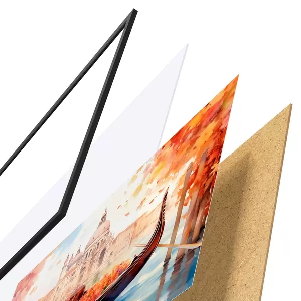 Il poster è composto da cornice, plexiglass, immagine stampata e supporto in truciolato. Il poster può essere immediatamente appeso alla parete grazie ai supporti sul retro.
