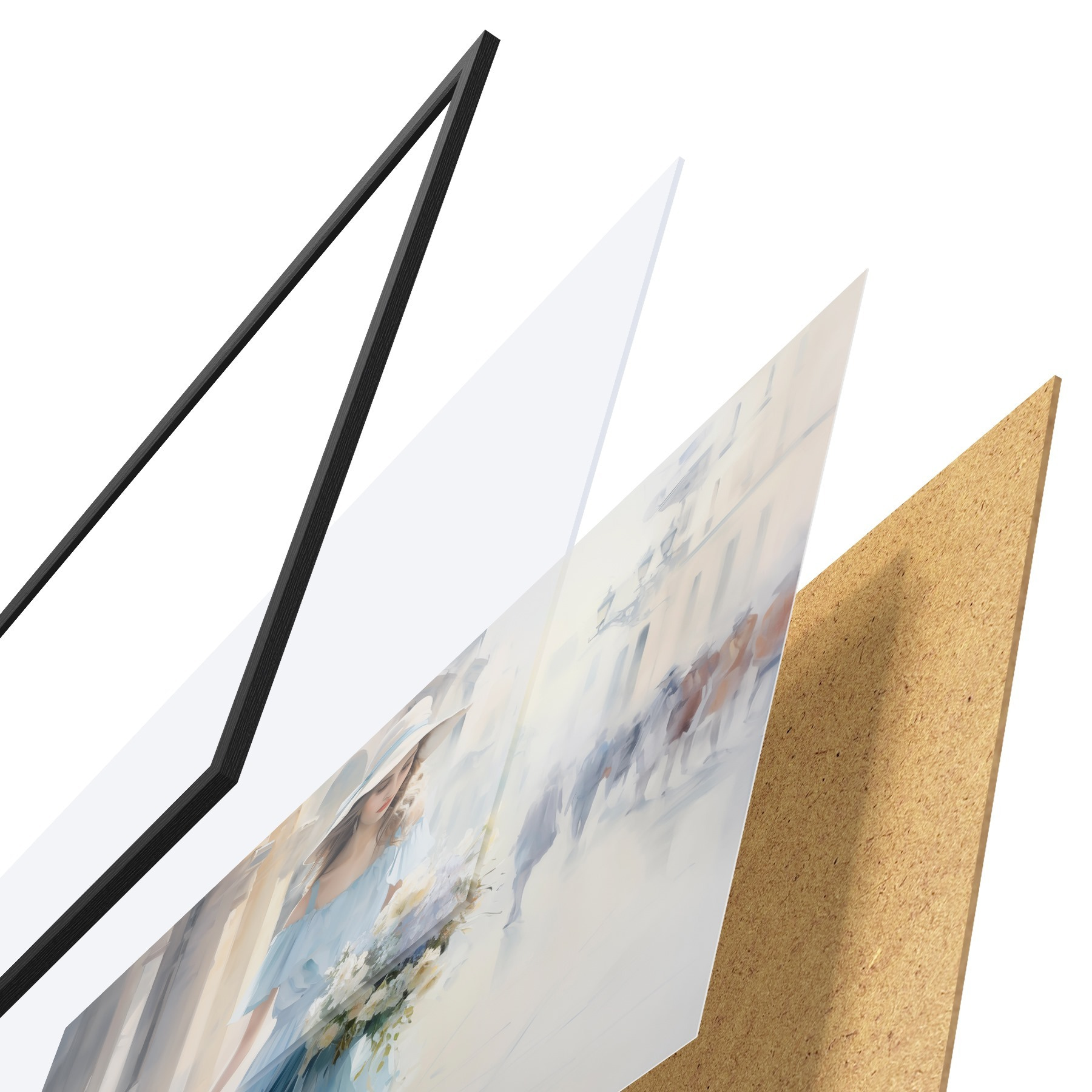 Il poster è composto da cornice, plexiglass, immagine stampata e supporto in truciolato. Il poster può essere immediatamente appeso alla parete grazie ai supporti sul retro.