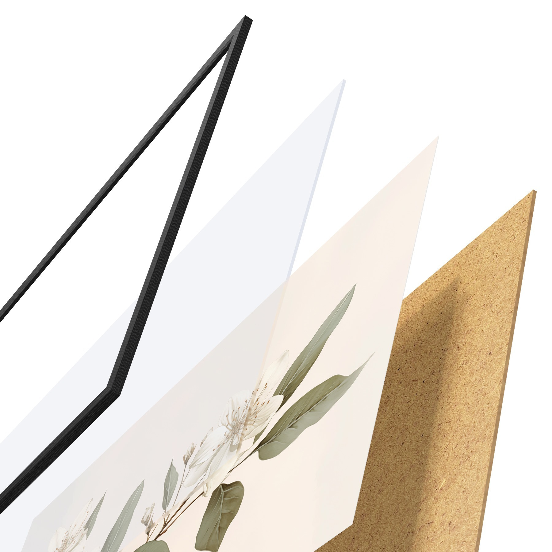 Il poster è composto da cornice, plexiglass, immagine stampata e supporto in truciolato. Il poster può essere immediatamente appeso alla parete grazie ai supporti sul retro.