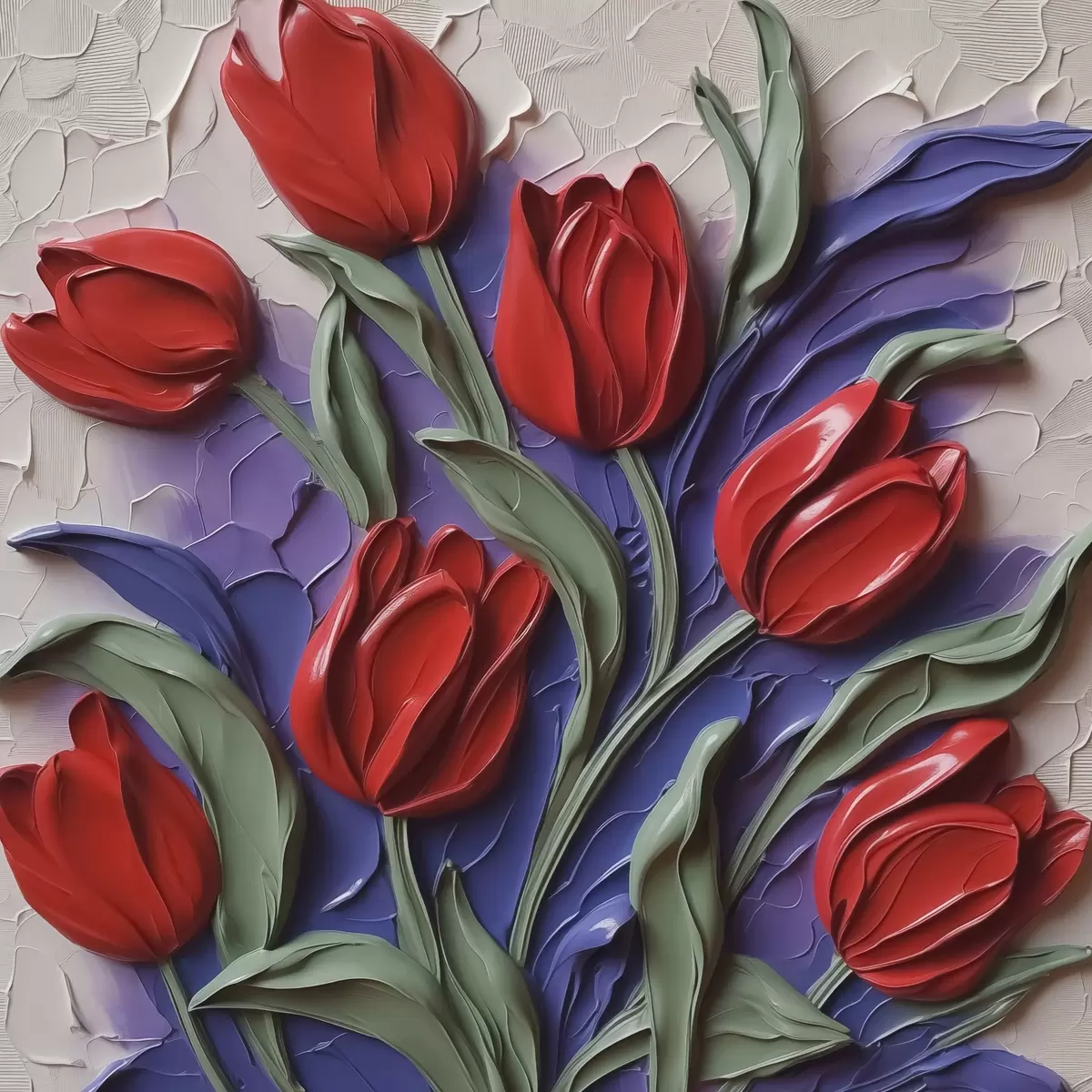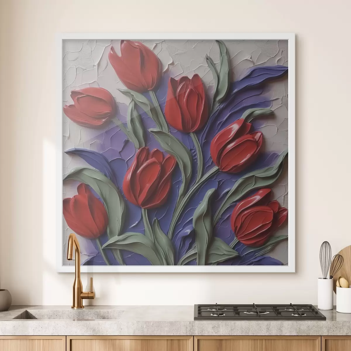 Poster Tulipani rossi su pennellate di imitazione viola Nr f42584