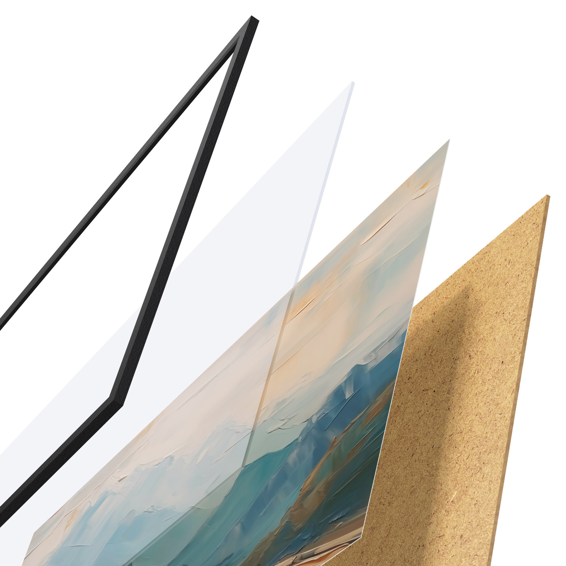 Il poster è composto da cornice, plexiglass, immagine stampata e supporto in truciolato. Il poster può essere immediatamente appeso alla parete grazie ai supporti sul retro.