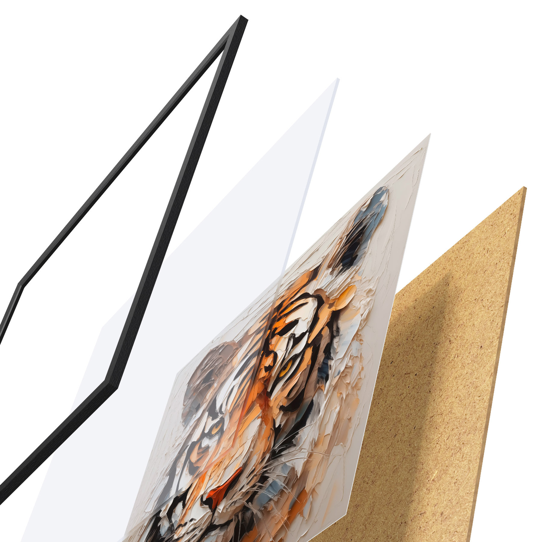 Il poster è composto da cornice, plexiglass, immagine stampata e supporto in truciolato. Il poster può essere immediatamente appeso alla parete grazie ai supporti sul retro.