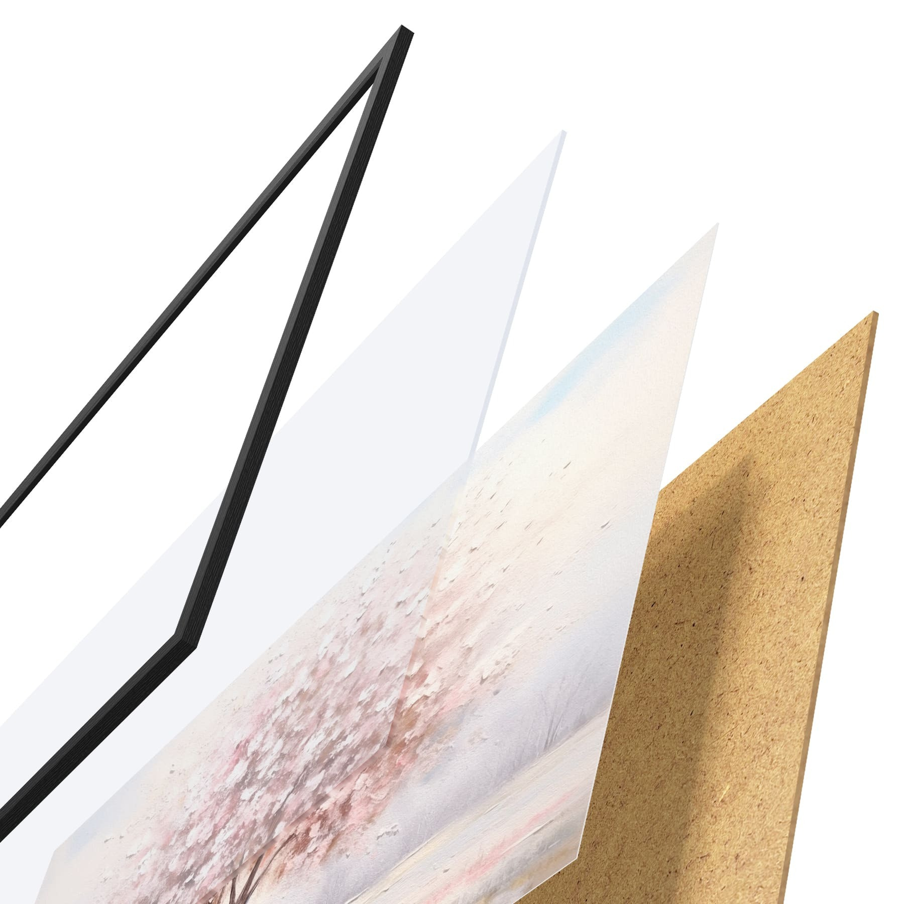 Il poster è composto da cornice, plexiglass, immagine stampata e supporto in truciolato. Il poster può essere immediatamente appeso alla parete grazie ai supporti sul retro.