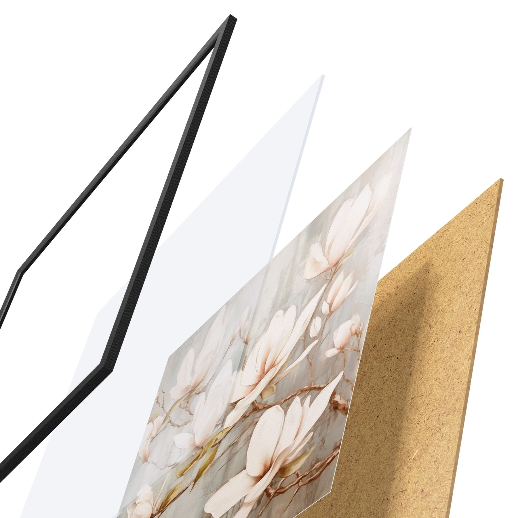 Il poster è composto da cornice, plexiglass, immagine stampata e supporto in truciolato. Il poster può essere immediatamente appeso alla parete grazie ai supporti sul retro.
